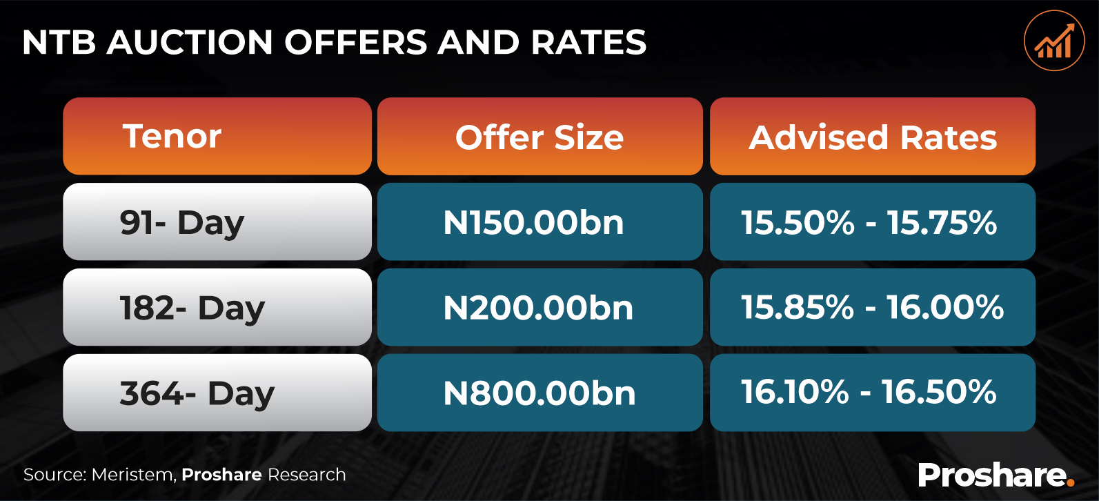 The Central Bank of Nigeria (CBN) is scheduled to conduct a Treasury Bills (T-bills) Primary Market Auction (PMA) on Wednesday, February 18, 2026, marking its second auction of the month. A total of N1.15trn will be offered across the trio of maturities, comprising N150.00bn in 91-day bills, N200.00bn in 182-day bills, and N800.00bn in 364-day bills. In the same vein, bills worth N33.81bn, N27.70bn, and N704.38bn across the three maturities are scheduled to mature during the week, totaling N765.89bn, implying a net borrowing position of N384.11bn.