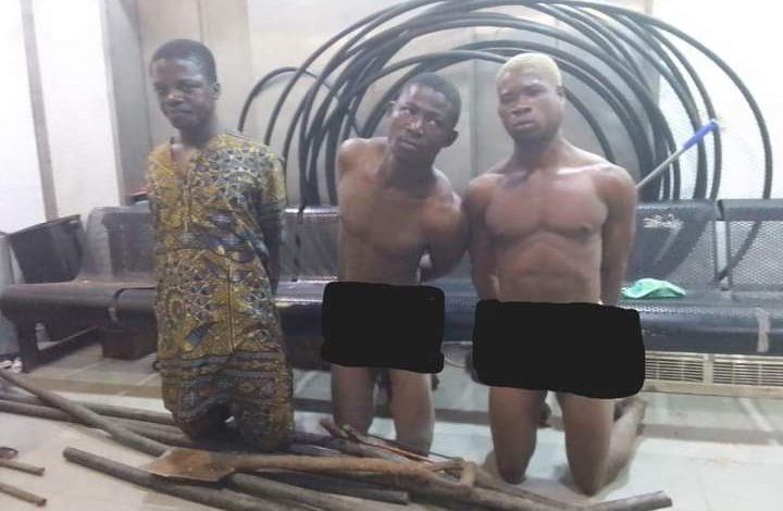 A combined patrol team of officers from Aviation Security’s Crime Investigation and Intelligence (CII) Unit, and the Joint Monitoring Task Force (JMTF) have arrested three persons suspected to be cable thieves around the FAAN Training School.