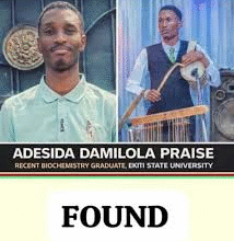THE Ekiti Police Command on Monday, said it has found a 21-year-old student of Ekiti State University (EKSU), Ado-Ekiti, Damilola…