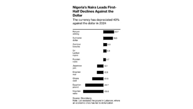 Naira falls at official market