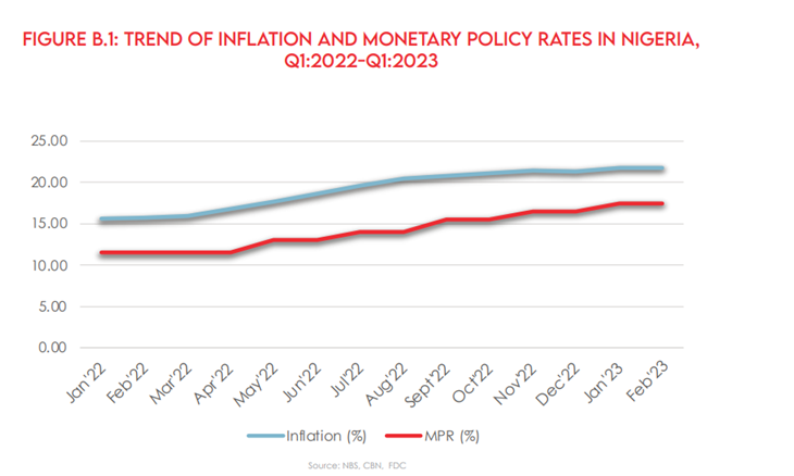 In March 2023, the CBN’s Monetary Policy Committee raised the monetary policy rate by 50 basis points (bps) to 18% per annum (pa). This represents the sixth consecutive rate hike with a cumulative increase of 650bps. The major considerations underlying the decision of the MPC include: the global financial tremor, a rise in inflation, unintended consequences of the cash crunch, currency pressures, depleting external reserves, and sustained positive GDP growth.