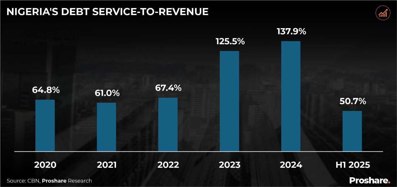 However, the absence of post-H1 2025 data from the Debt Management Office (DMO) and the National Bureau of Statistics (NBS) has led institutions such as the World Bank to estimate Nigeria’s debt-to-GDP ratio at 40% in its October 2025 Nigeria Development Update, while S&P estimated the ratio at 40.7% at year-end (see chart 2 below).