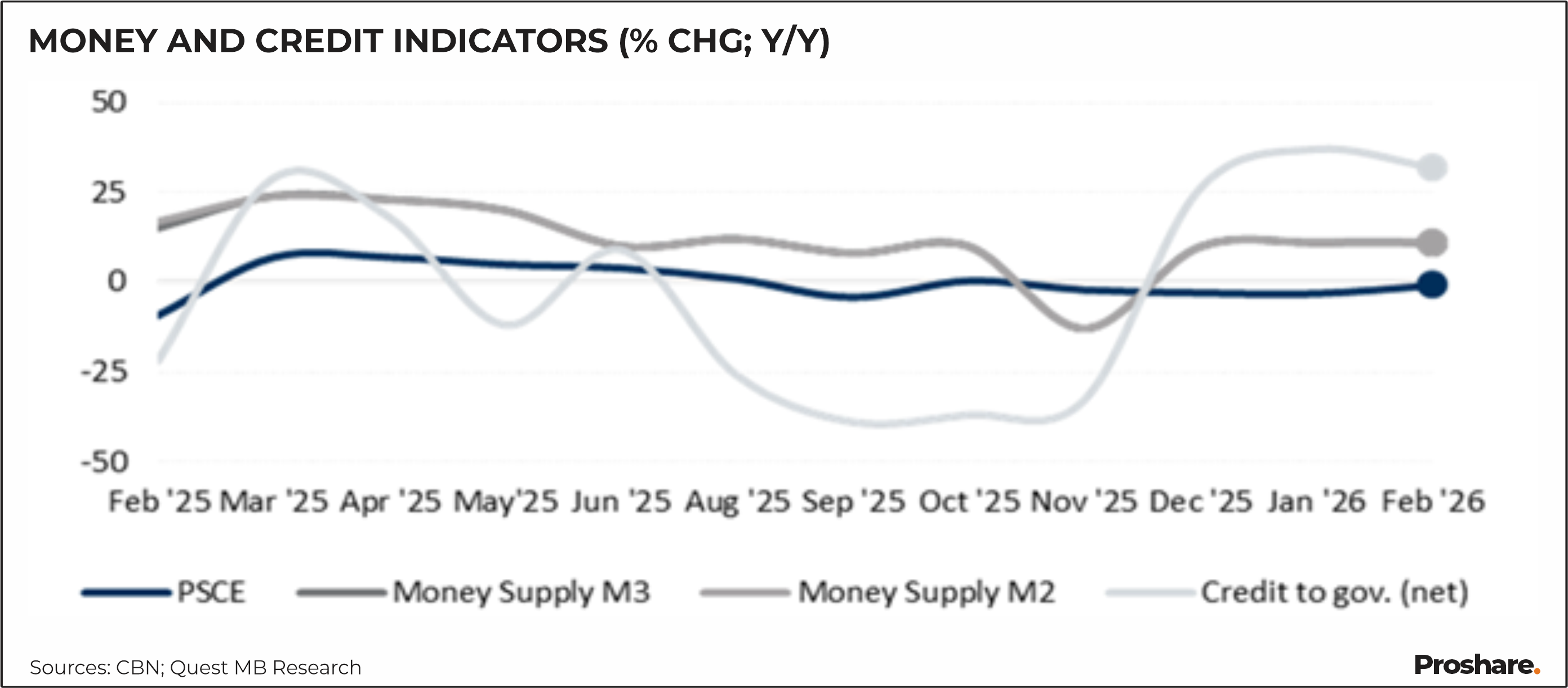 - The CBN’s elevated interest rate stance remains a major factor behind the constrained credit extension to the private sector.