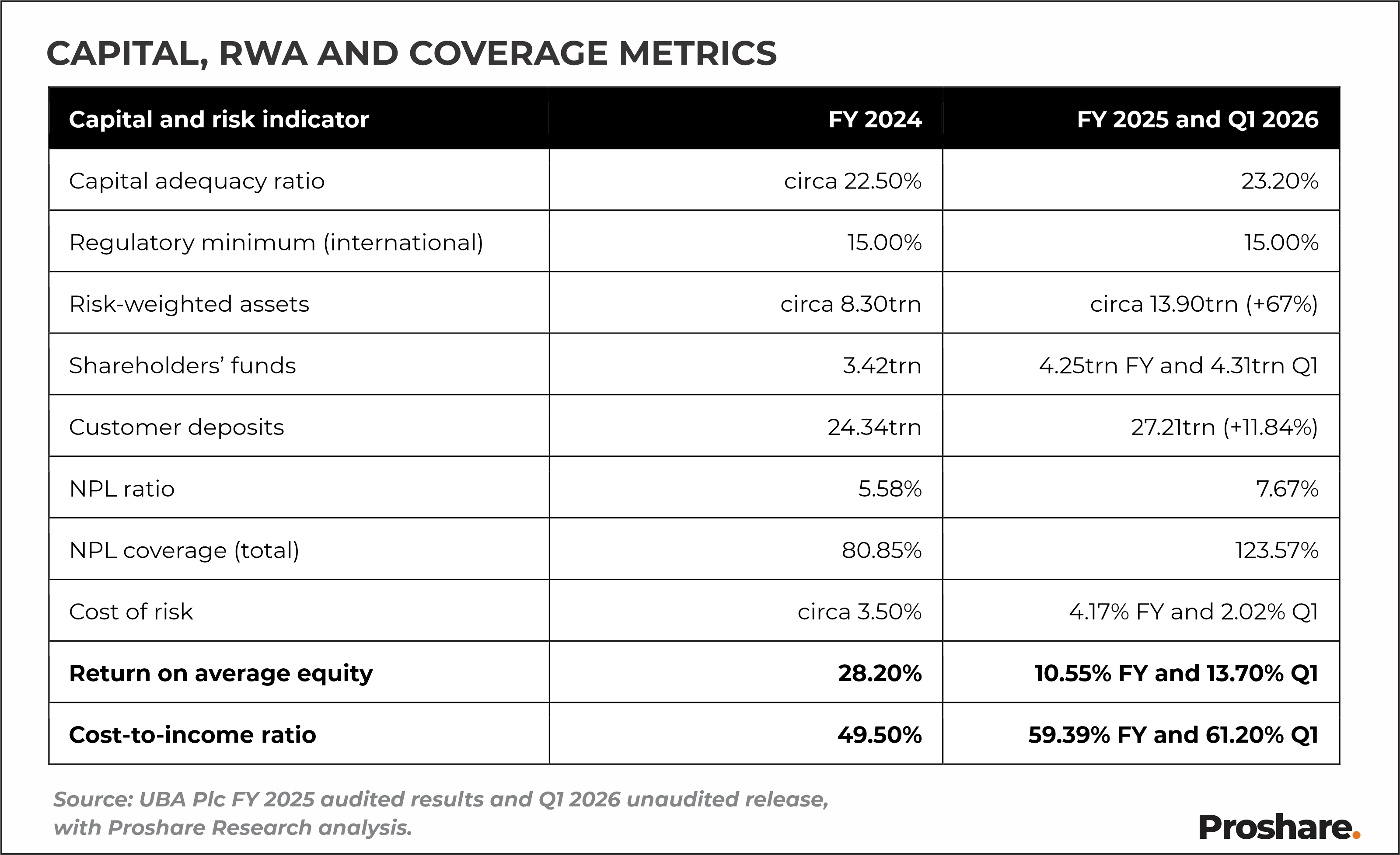 This analyst note, stripped of the drama that usually attends such reporting, recognises that what matters is not the fall in earnings but the quality of recognition, the sufficiency of capital, and the early signals from Q1 2026 on whether the reset has been effectively executed. The transition from capital adequacy to capital quality now defines the investment case, and UBA’s disclosures provide a structured basis to assess this shift.
